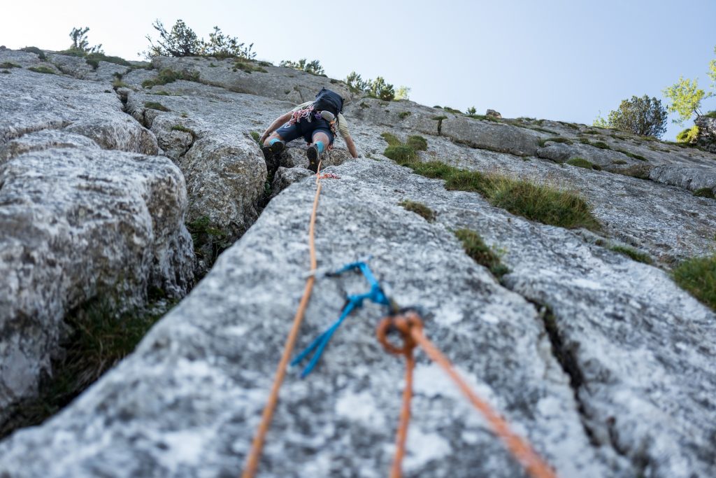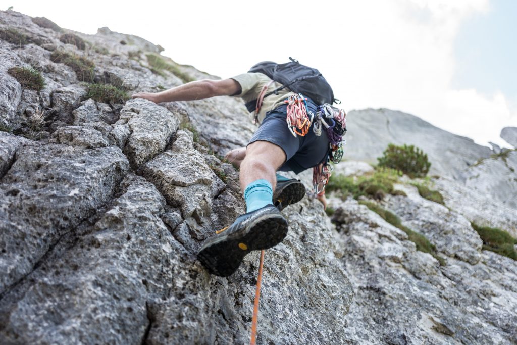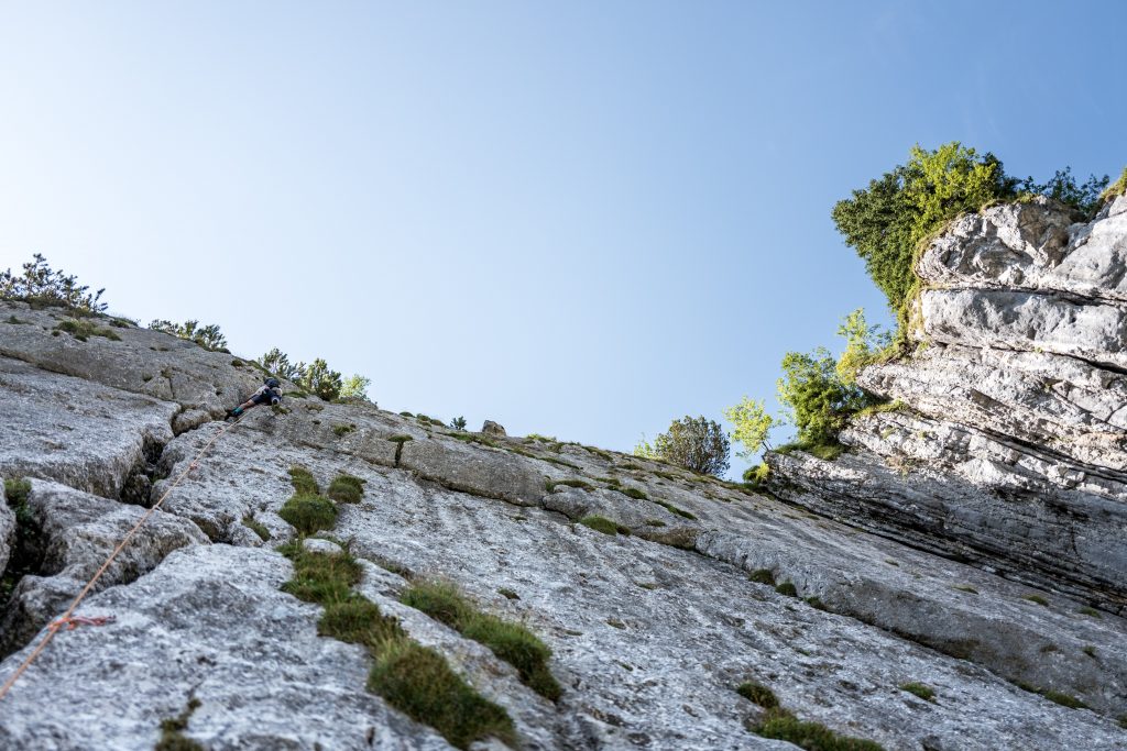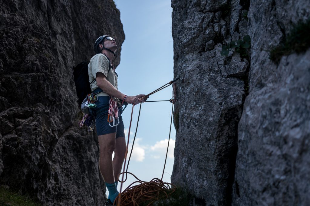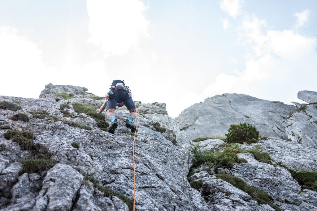 Andy hat diese Lehrgänge bereits hinter sich und allesamt bestanden. Das ist auch die Voraussetzung, damit er in die eigentliche Ausbildung zum Führen von Gästen überhaupt einsteigen kann. Womit wir wieder bei den Marihuanabuam wären. Denn es ist ein beträchtlicher Unterschied ob du mit einem Spezl in Wechselführung hinaufturnst oder als Seilerster und Guide vom Einstieg bis zum Gipfel und wieder zurück die Verantwortung trägst: Da gilt es Quergänge abzusichern, die Standplatzwechsel zu organisieren, im einfachen Gelände gestaffelt zu klettern oder auch mal Schrofenpassagen am kurzen Seil zu überwinden