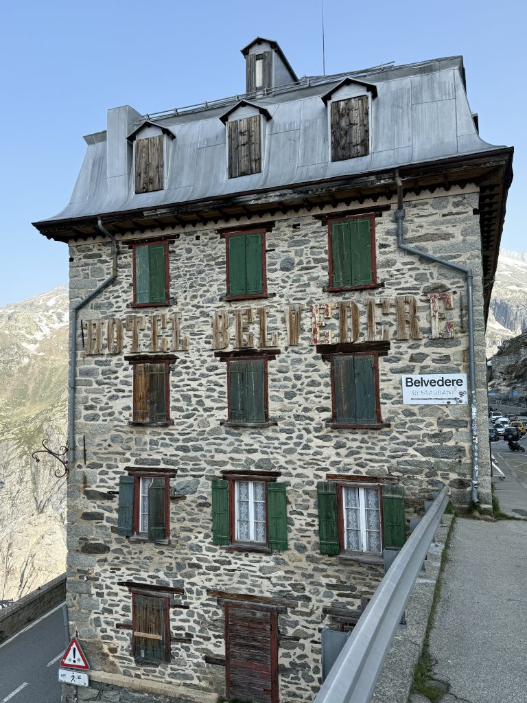 Als Skitour empfiehlt sich der Galsenstock dann, wenn die Furkapassstraße geöffnet ist. Dann kannst du direkt am Hotel Belvedere starten. Das ehrwürdige Haus ist ein Lost Place und hat es durch seine spektakuläre Lage zum Instagram Hotspot gebracht. Bereits 1882 hatte es die bekannte Walliser Hoteliersfamilie Seiler erbaut. Damals war der Rhonegletscher noch ein überfließendes Spektakel. Mit ständigem Knistern und Bersten floss er nur wenige hundert Meter am Hotel vorbei.