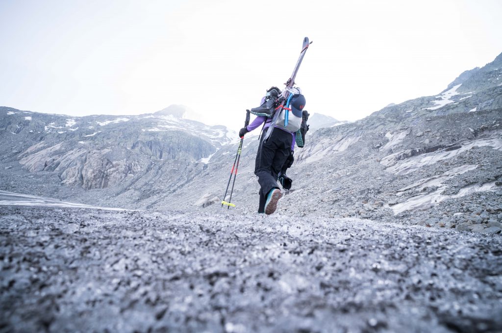 Die Ski kannst du direkt neben dem Gipfelkreuz anschnallen und wenn dein Timing stimmt, dann erwartet dich eine Firnabfahrt vom Feinsten. Die Sonnenstrahlen werden die Südwesthänge nicht zu früh erfassen, also lass dir Zeit und starte nicht zu früh – dann aber gibt es kein halten: über 1.000 Höhenmeter in bestem teilweise steilem Skigelände liegen vor dir. Und auch danach ist ist der Spaß noch lange nicht vorbei, wenn du die letzten 400 Höhenmeter über den flach auslaufenden Rhonegletscher carvst.