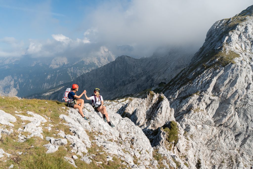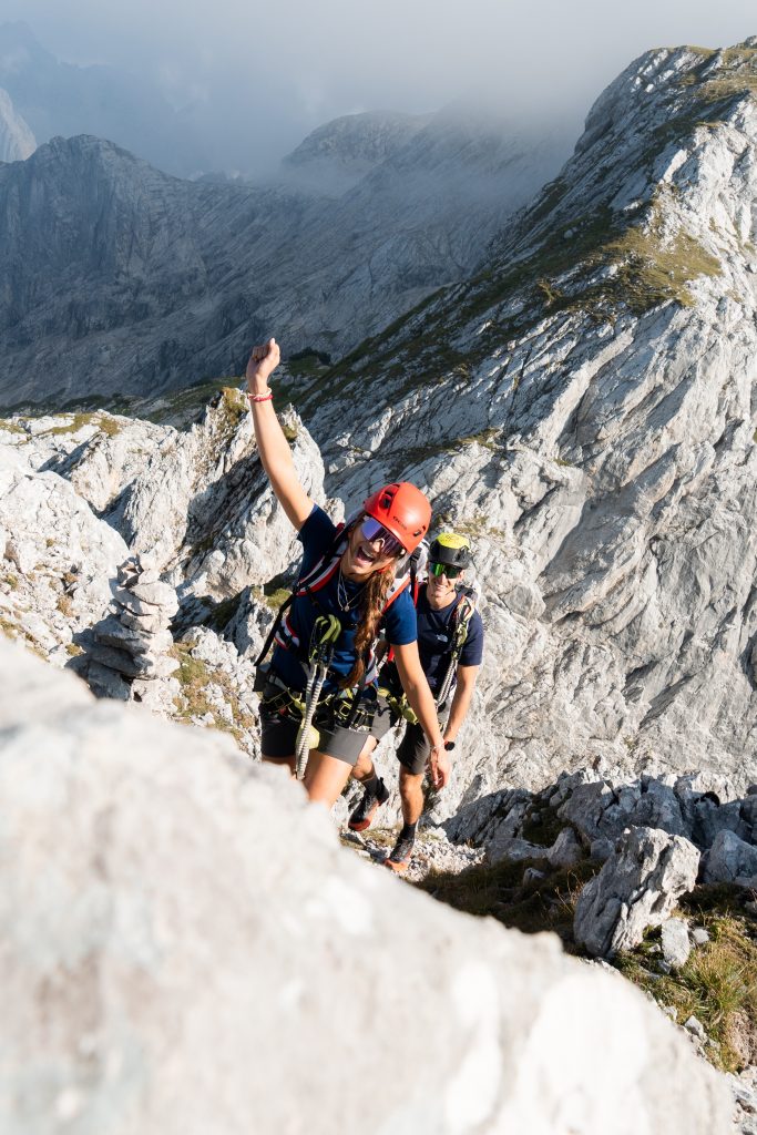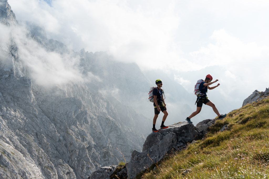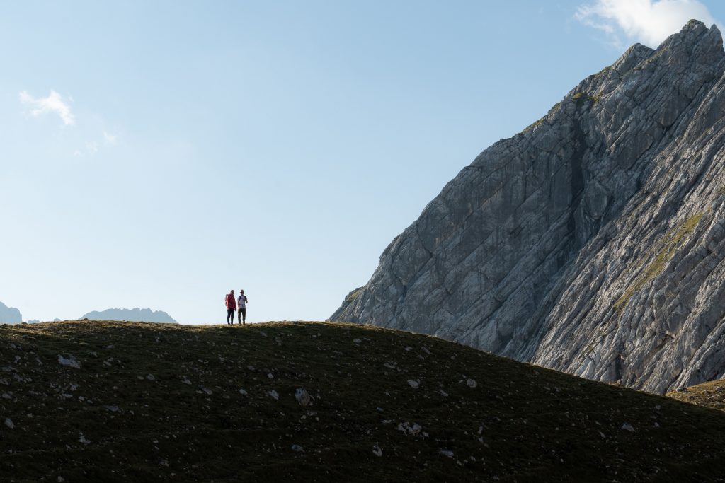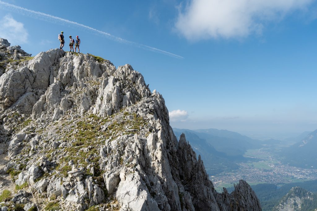 Dabei besteigen sie den exponierten Höllentorkopf, einen Gipfel, der mehr Aufmerksamkeit verdient hätte. Durch das anspruchsvolle Gelände und die benachbarte, wesentlich einfachere Alpspitze wird er sein Dornröschendasein auch weiterhin fristen.