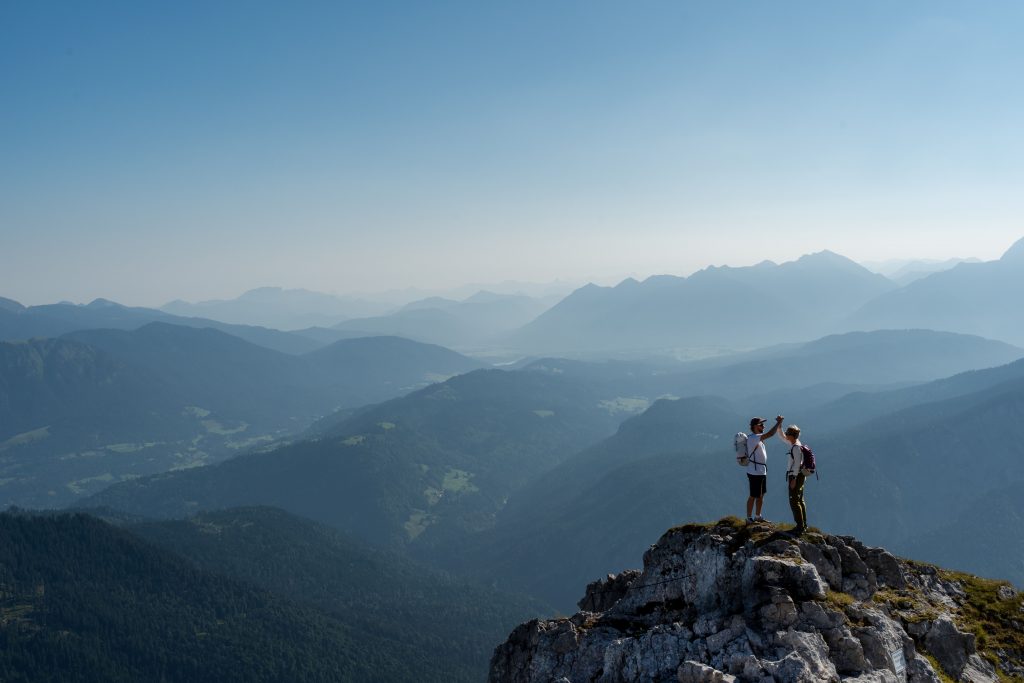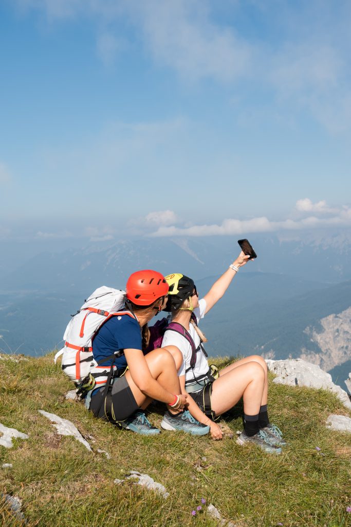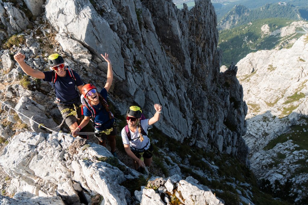 Charly, Julia, Max und Simon genießen einen herrlichen Sommertag im Alpspitzgebiet.