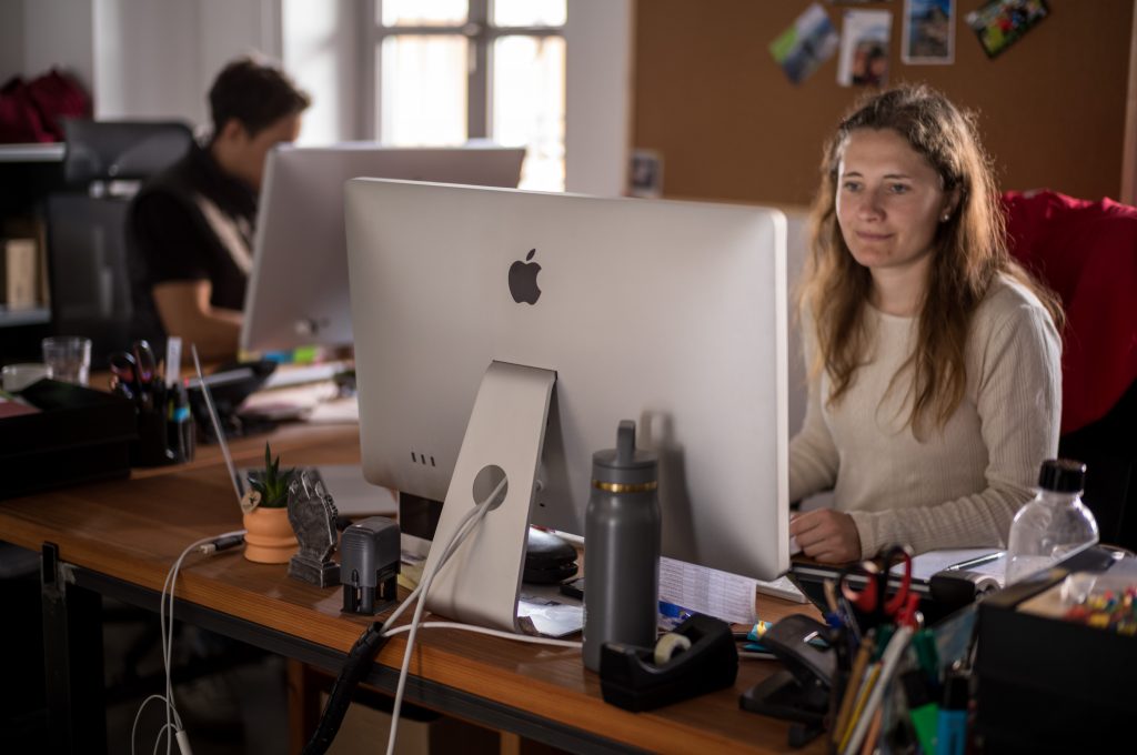 Julia, Emma, Ines, Simon, Markus, Max und Christof organisieren im VIVALPIN Büro in Garmisch-Partenkirchen alle Kurse, Führungen und Events.